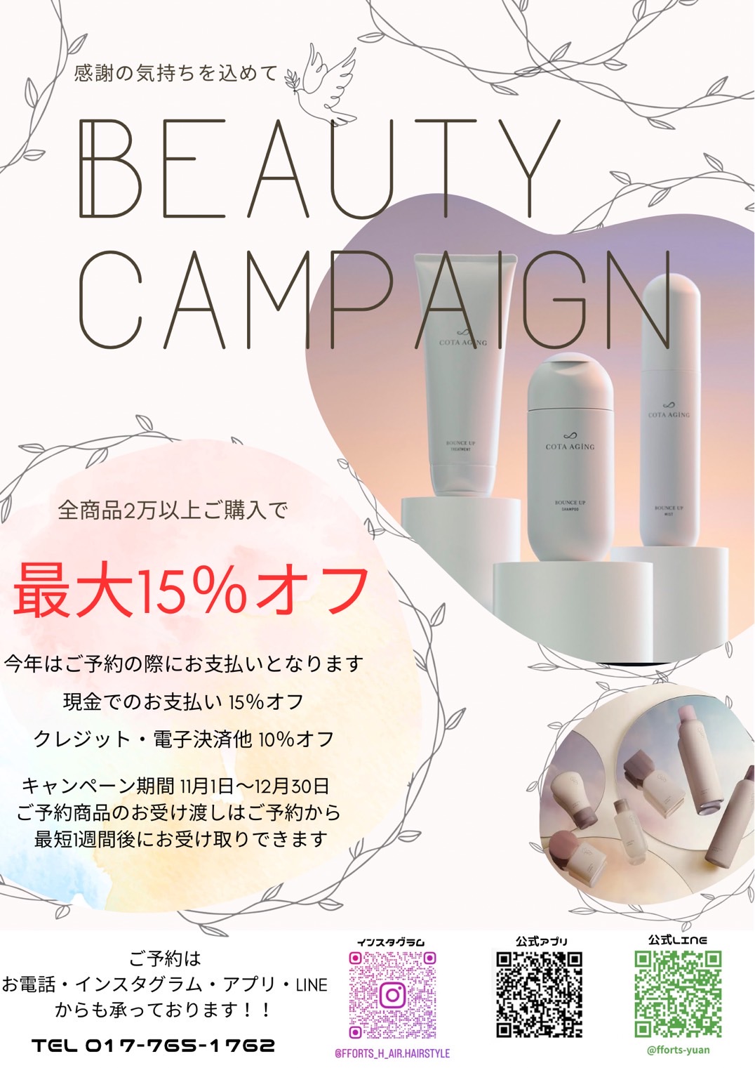 今年の感謝を込めて「ビューティーキャンペーン」を2ヶ月間開催します!